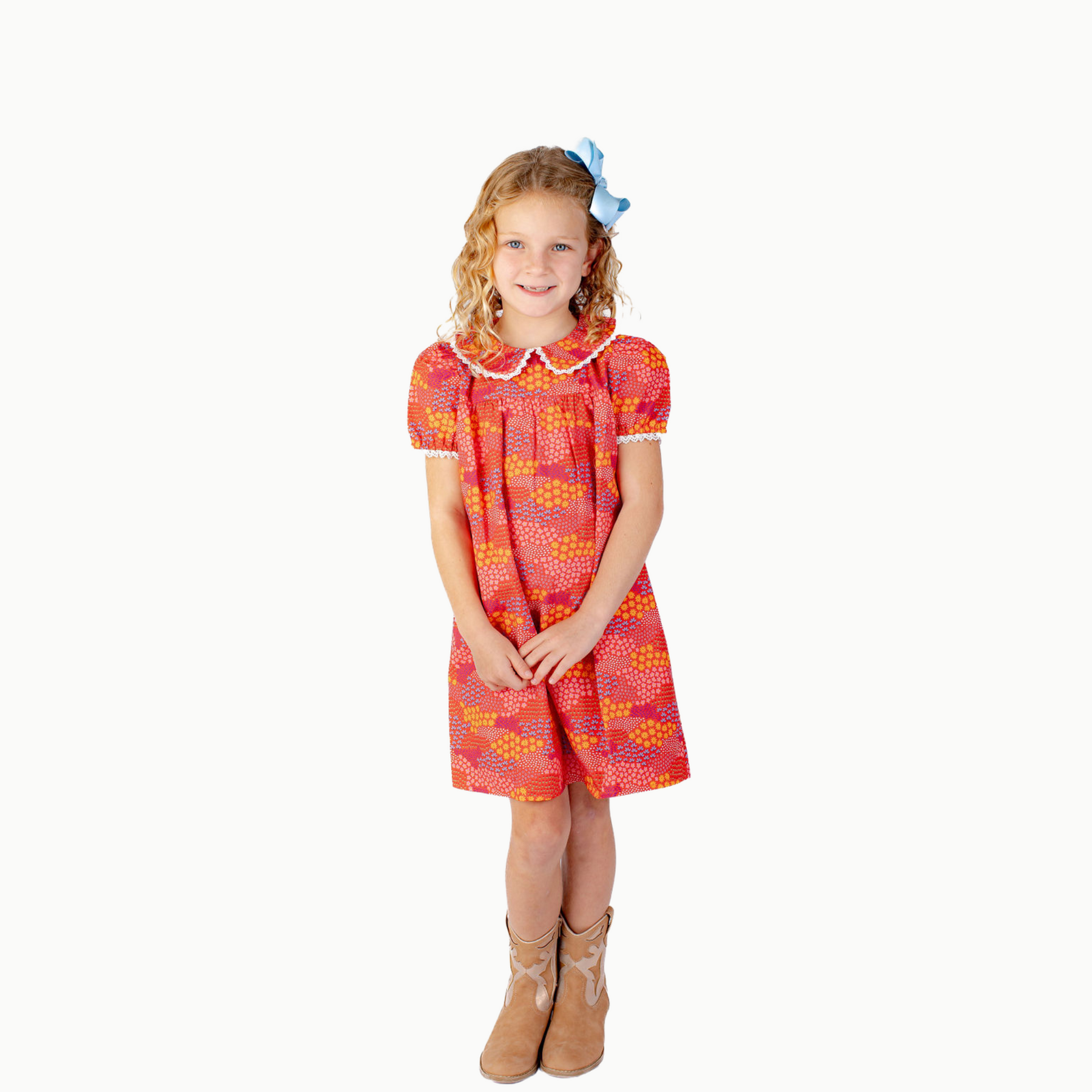 Regardless the activity, every little girl needs that one special dress. Lace trim at the collar and sleeves adds a little something sweet while playful prints keep this dress cute and fun.